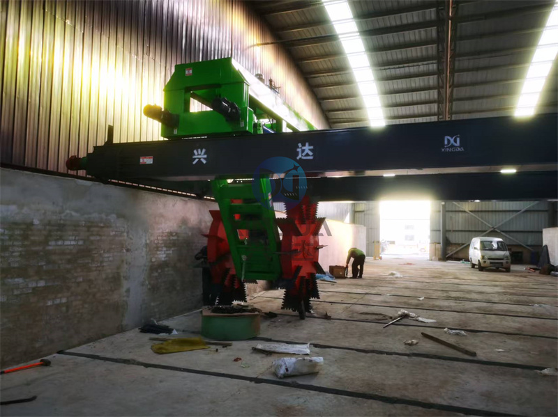 完全抵達現(xiàn)場后開始有序的安裝有機肥輪盤式翻拋機:輪盤式翻拋機是整套有機肥生產(chǎn)線中的一款有機肥翻堆設備。在有機肥生產(chǎn)線中擔當起到翻拋物料的作用。輪盤式翻拋機設備采用中間鏈條傳動機構,帶動兩大直徑翻拋輪盤,對稱翻拋,無死角可調(diào)速移位小車,左右位移,低能耗完成大跨距翻拋工作。輪盤式翻拋機適用于豬牛羊雞等畜禽糞便、污泥垃圾、糖廠濾泥、糟渣餅粕和秸桿鋸屑等有機廢棄物的發(fā)酵翻堆,廣泛應用于有機肥廠、復混肥廠、污泥垃圾廠、園藝場以及雙孢菇種植廠等的發(fā)酵腐熟和去除水分作業(yè)。